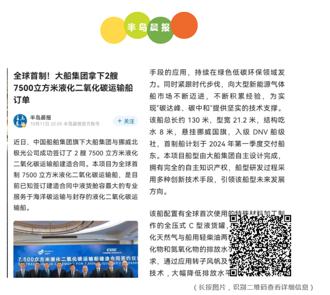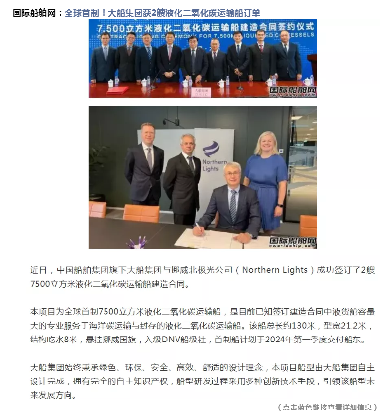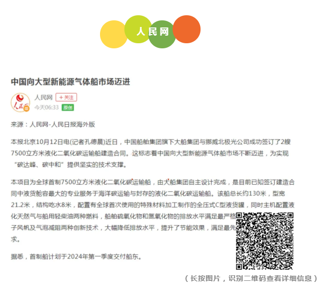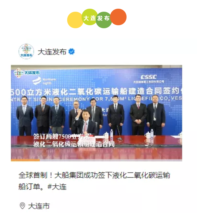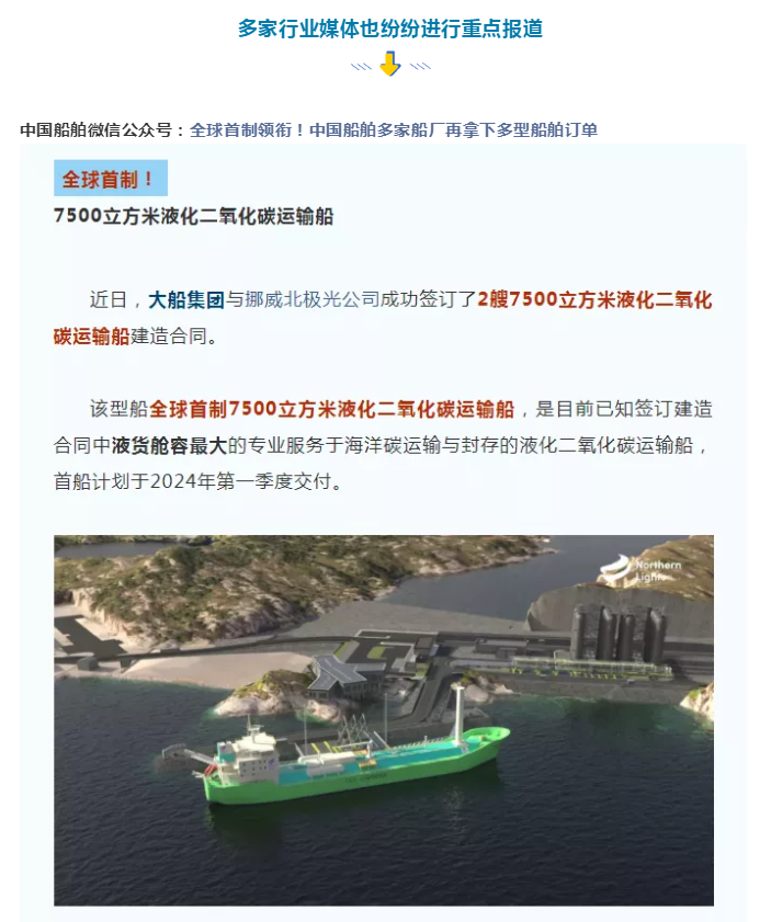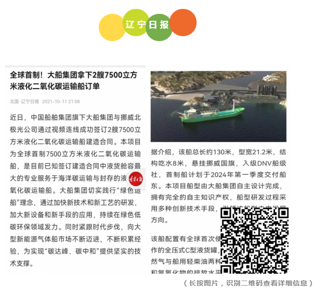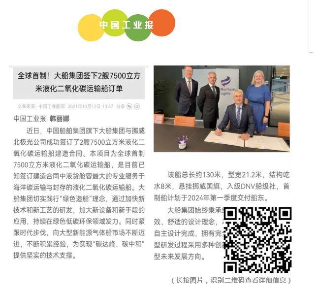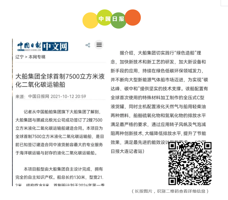 DSIC, a subsidiary of CSIC, concluded a contract for two Global First 7500m3 Liquefied Carbon Dioxide Vessels”recently, which has drawn the attention of media. CCTV, People’s Daily, People Website, Global Times, China Industry News, China Daily, Liaoning Daily, Dalian Daily and China Ship News have reported this event.